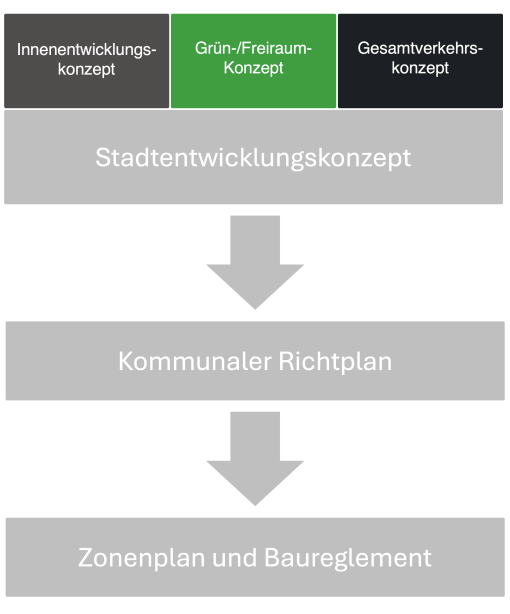 Im Freiraumkonzept liegt der Fokus auf Natur und Freizeit. Mit Schaffung und Pflege von Parks, Grünflächen, Erholungsgebieten sowie Sport- und Freizeitanlagen wird ein vielfältiges und lebenswertes Angebot gefördert.